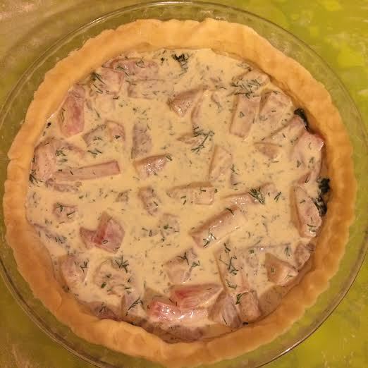 На тесто выложить шпинат.