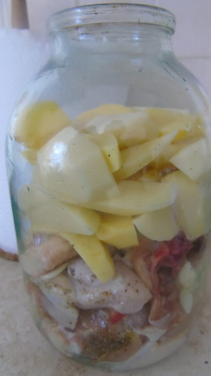 Вкуснейшая, ароматная курочка, которая готовится сразу с гарниром. За счет запекания в банке, все соки остаются в блюде...