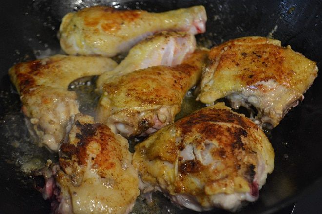 Курицу порезать на порционные куски, помыть и просушить бумажным полотенцем. В сковороде разогреть растительное и сливочное масло. Добавить кориандр и карри. Немного прогреть. Выложить курицу в сковороду и обжарить с 2ух сторон до золотистой корочки.
