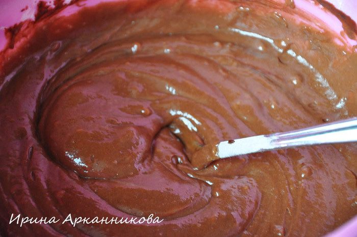 В шоколадное тесто вмешать аккуратно белок. Выпекать при 180°С около 50 минут.