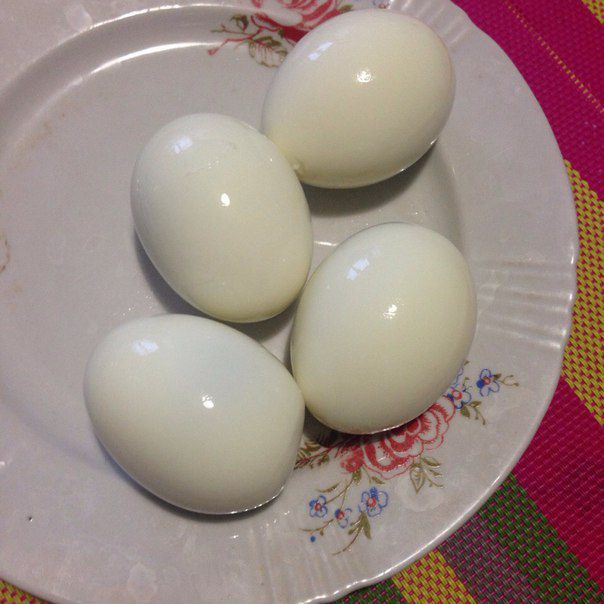 Отварить яйца вкрутую.