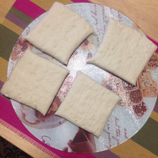 Тесто достать заранее, разморозить и разрезать на 4 равные части.