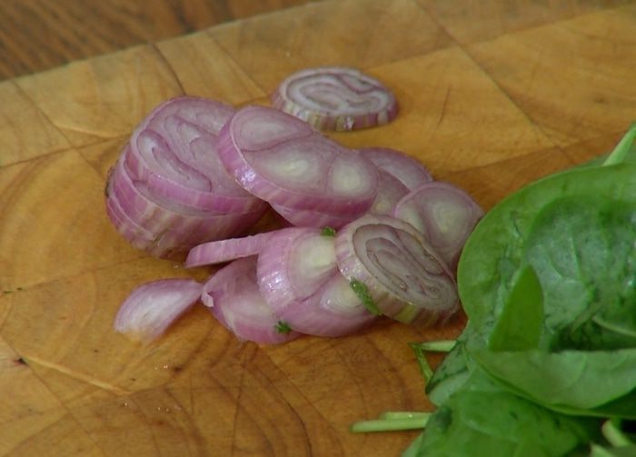 Лук почистить и нарезать кольцами.