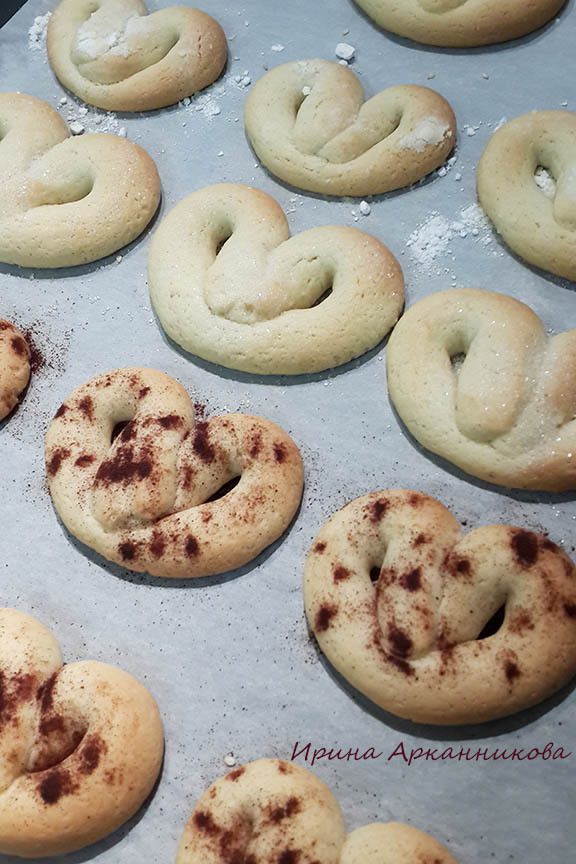 Выпекать около 15-20 минут. Зависит от размера крендельков.