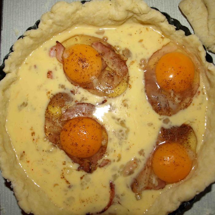 Яйца и бекон, это такое классическое сочетание на завтрак практически в любой стране мира. А сколько вариаций на эту тему. Целые симфонии звучат. Я хочу поделиться с вами этакой рапсодией в кулинарном мире — пирогом с начинкой из бекона и яиц. Почему рапсодия, а потому что рапсодия, это музыкальное произведение на темы народных песен и эпических сказаний. А чем бекон и яйца не эпическое сказание? Этакое новое прочтение яичницы с беконом :)