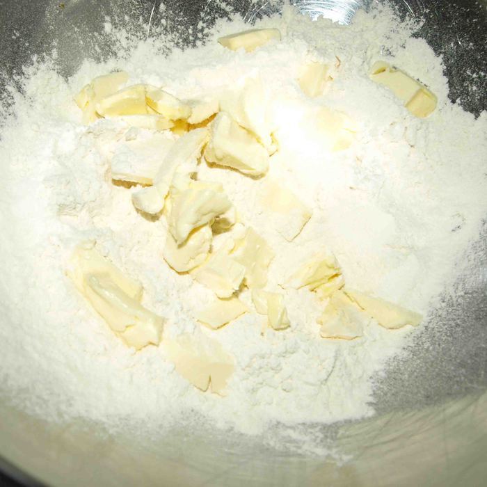 Муку просеять. Растираем с маслом в мелкую крошку.