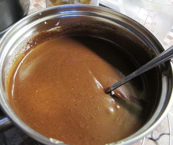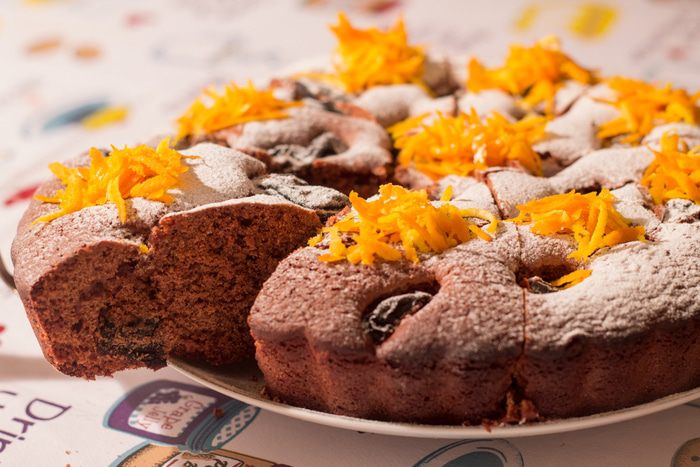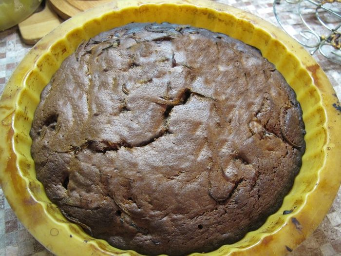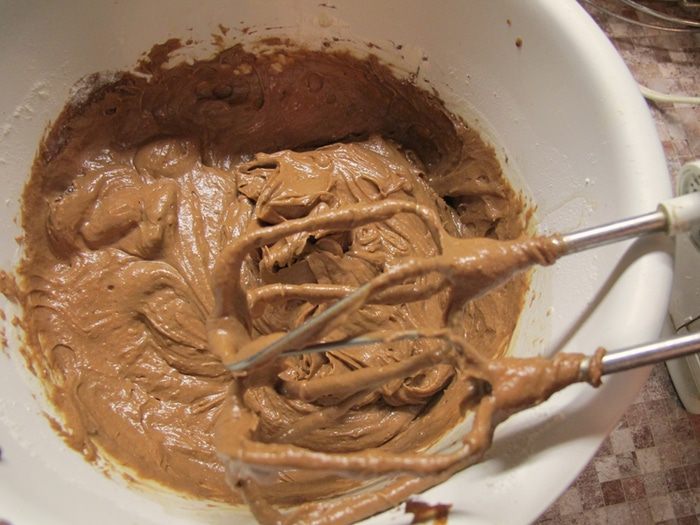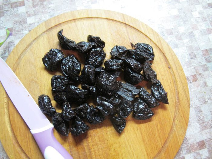 Яйца взбить с сахарным песком. Влить шоколадно -масляную смесь и взбить миксером на средних оборотах. Затем добавить апельсиновый сок и цедру, перемешать. Муку смешиваем с разрыхлителем, всыпаем в жидкие компоненты и размешиваем миксером. Затем добавляем чернослив и ромовый ароматизатор.