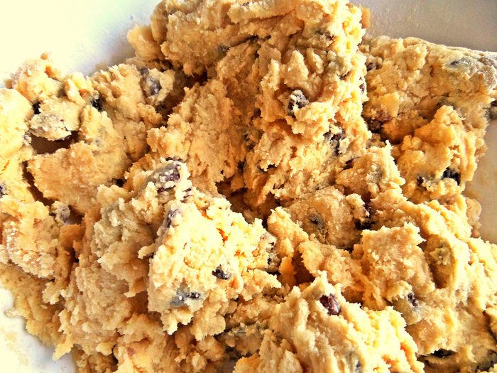 Всыпаем чистый отжатый изюм, желательно мелкий.