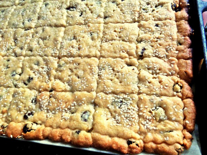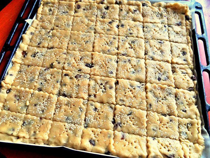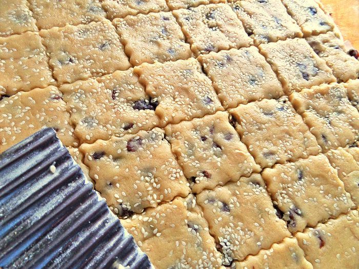Отделяем печенье на квадратики или ромбики. Если нет фигурного ножа, просто сразу после духовки нарежьте печенье обычным ножом, пока оно горячее!