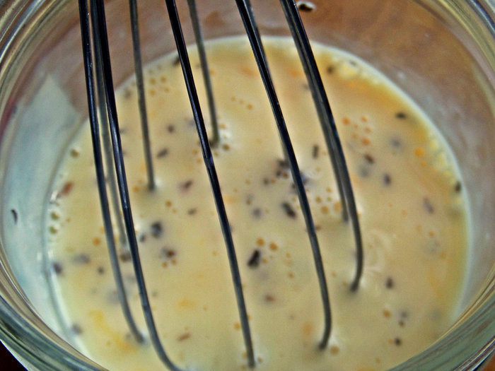 Посолим, взбиваем венчиком.