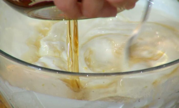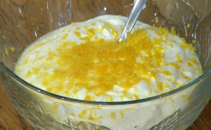 Добавить лимонный сок и цедру к сметане, все перемешать.