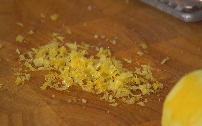 Цедру лимонов натереть на мелкой терке, выжать из них сок.