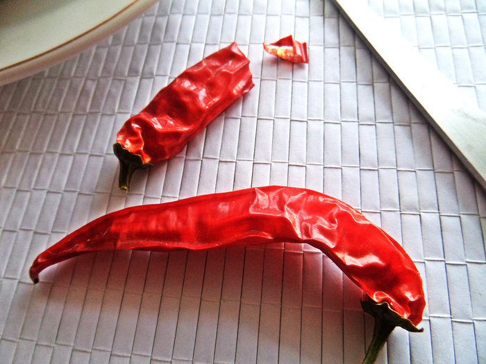 Отрезаем кусочек чили, сколько не боитесь :) Кидаем в чашку для пикантности.