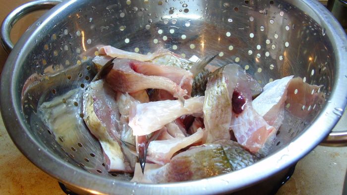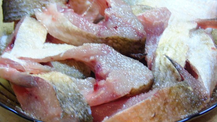 Хорошо присыпаем рыбу сахаром и оставляем на 1 час, сахар вберет в себя все лишние запахи.