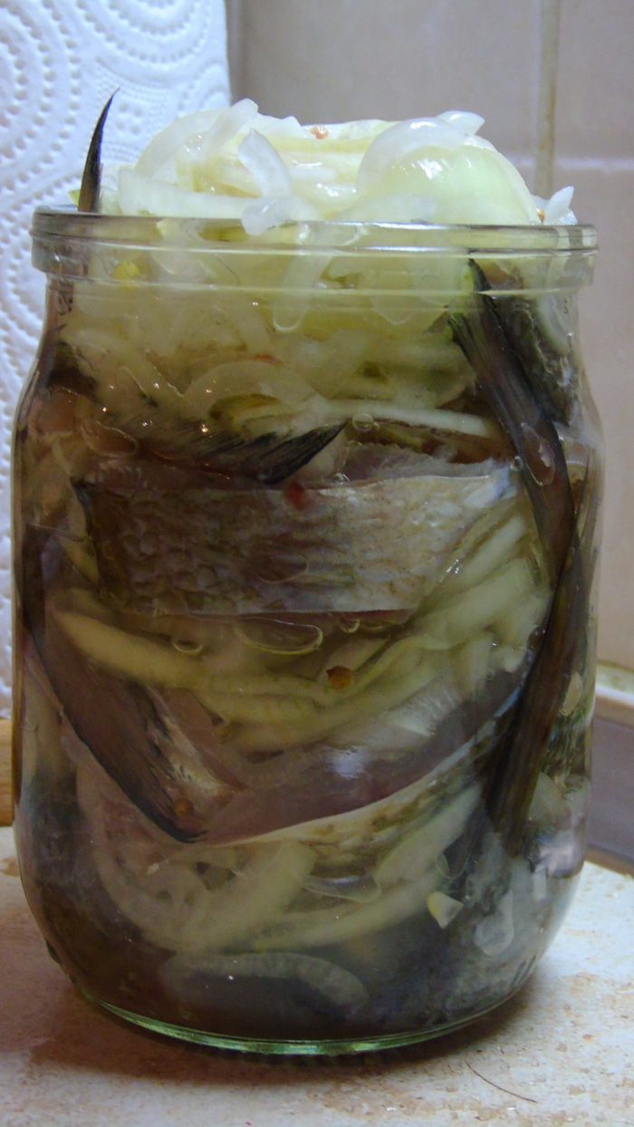 Укладываем рыбу в банку поплотнее слоями с луком и заливаем маслом. Отправляем в холодильник на 3 дня. Придется немного потерпеть, но зато потом ммм...