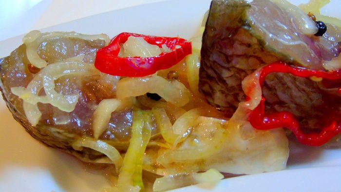 Меня угостили лещем, нужно было что-то делать, вот я и решила немного запечь, немного ухи и немного замариновать....Обычно по этому рецепту я мариную толстолобика, но результат с лещем меня очень порадовал, поэтому и решила поделиться.