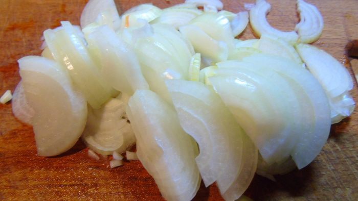 Лук нарезаем полукольцами.