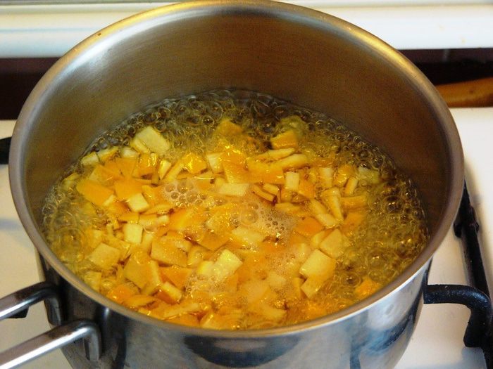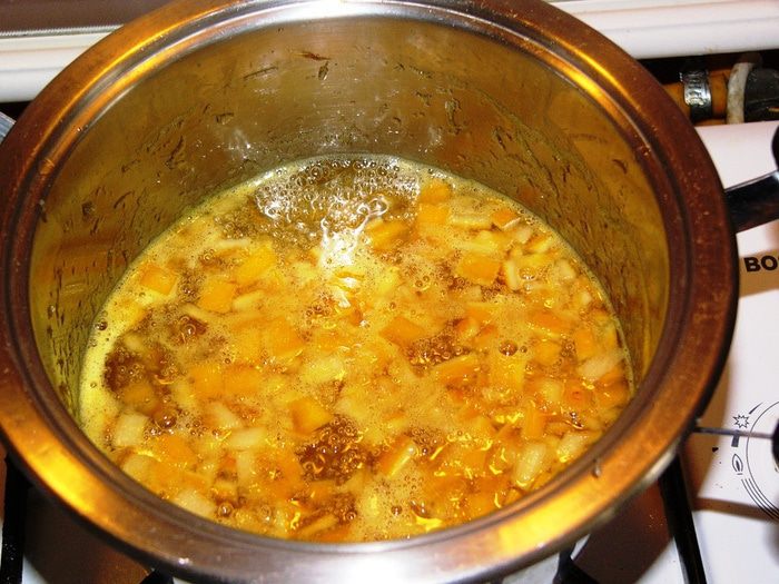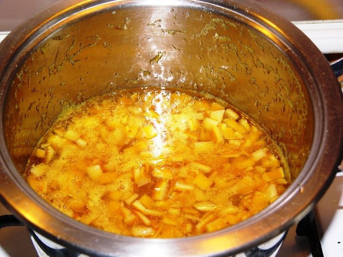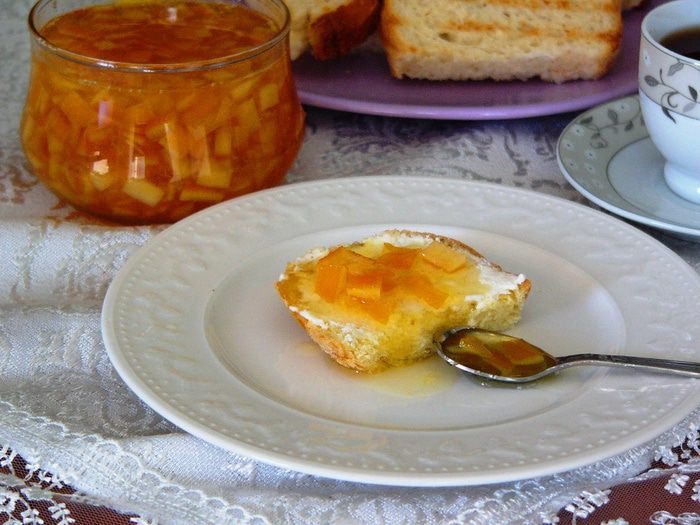 Разливаем варенье в банки горячим. Плотно закрываем крышкой. Так варенье может храниться долгое время. Ну, а если не терпится скорее таким вареньем полакомиться, то дожидаемся остывания и подаем апельсиновое варенье с гренками к завтраку.