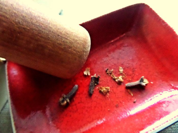 Растолочь 2-3 гвоздички.