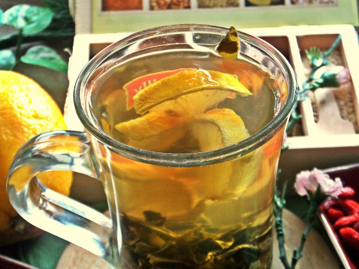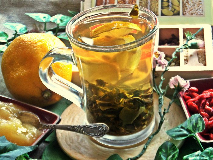 Такой чай хорошо выпить при простуде и вялости. Специи разгоняют кровь, лимон витаминизирует, а зелёный чай у меня даже дети пьют, понравилось.