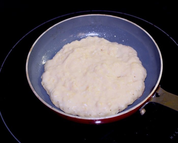 Выложить ложкой тесто на раскаленную смазанную сковороду, обжарить с двух сторон до румяного цвета.