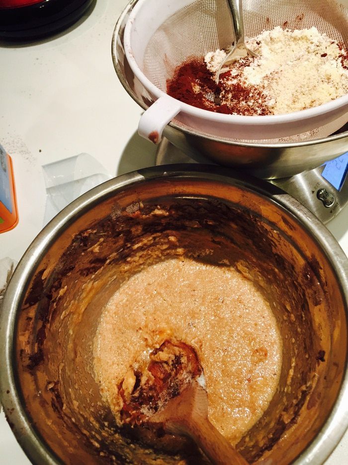 Теперь просеянные сухие ингредиенты. Вымешать и отставить.