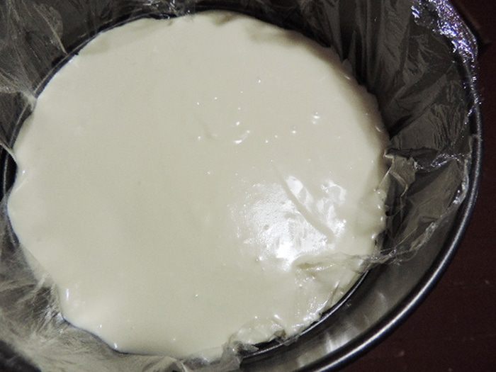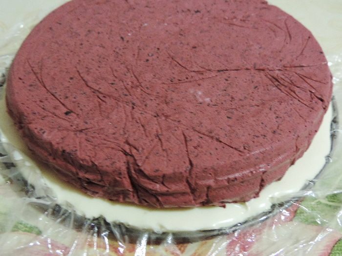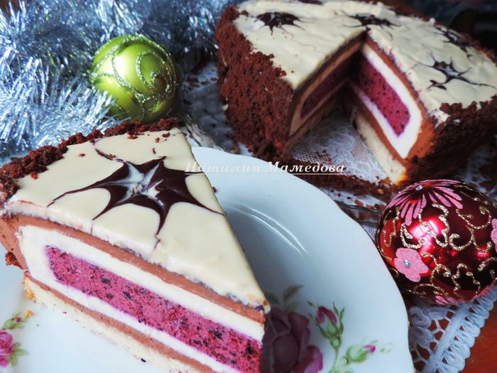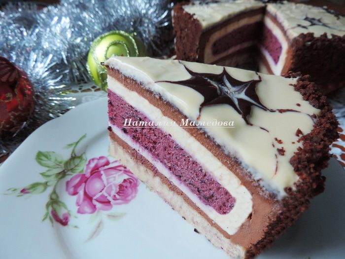 Когда мусс застынет, торт готов и его можно есть.