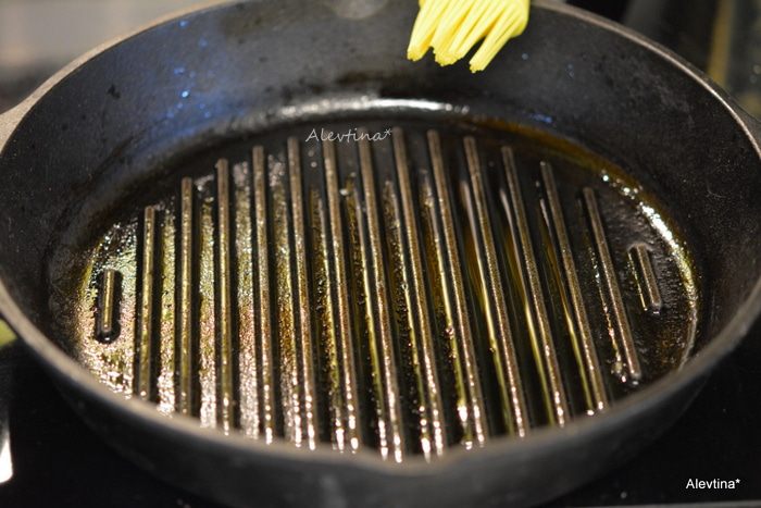 Смазать сковороду гриль маслом 1 ст. л. Разогреть духовку до 200°С.