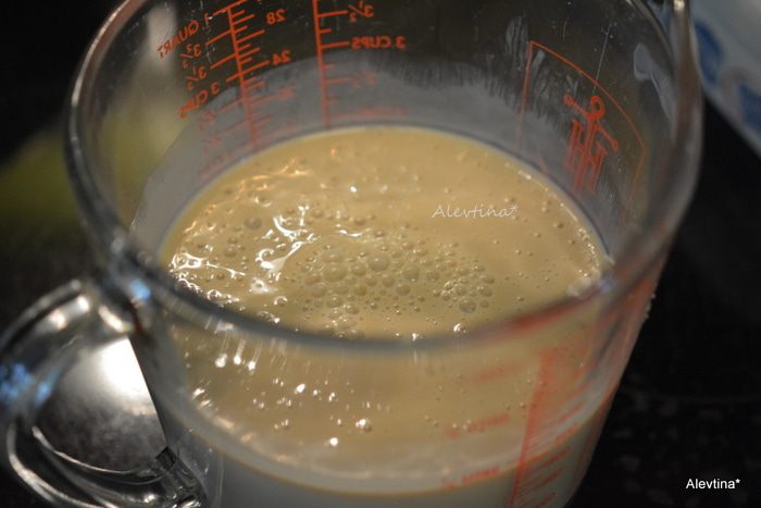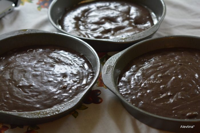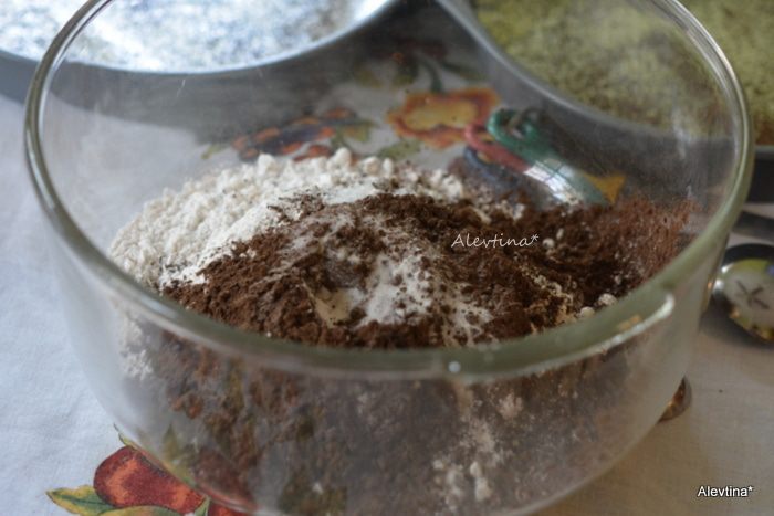 Продолжаем взбивать, всыпать мучную смесь попеременно с кефиром, разделив каждый примерно на 3 части. Добавляем часть кефира, перемешать, затем добавить часть муки, перемешать, опять кефир, муку, кефир, муку, перемешать.