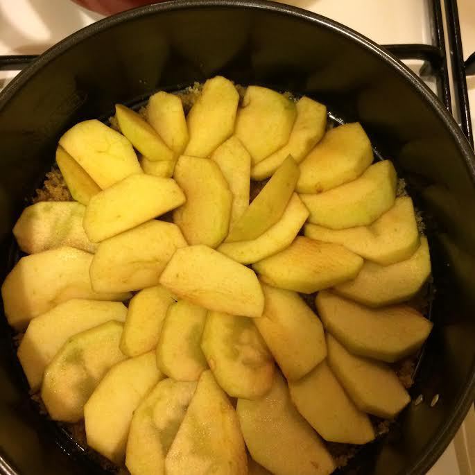 Яблоки очистить и нарезать, выложить поверх сахарной массы.