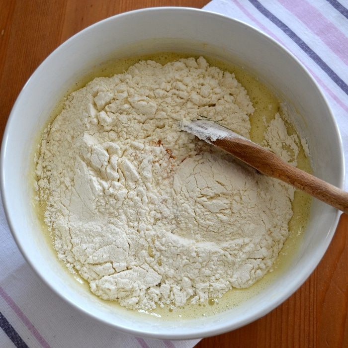 Добавьте сухие ингредиенты к влажным и перемешайте.