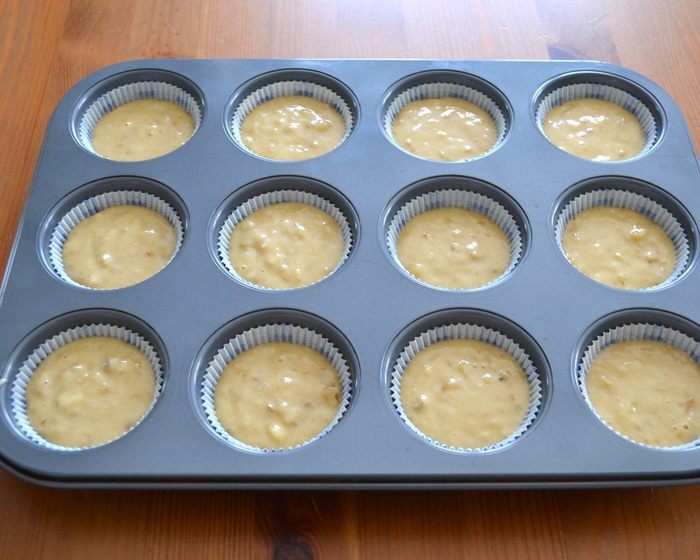 Выложите тесто в подготовленные формочки для маффинов. Заполняйте формочки на 2/3 объема, кексики хорошо подрастут. Выпекайте в разогретой до 170°С духовке около 15-20 минут.