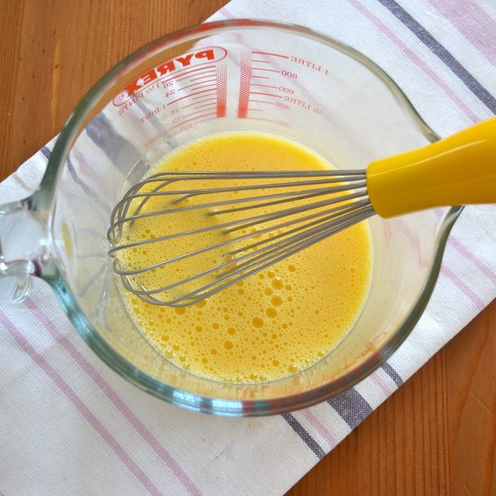 Отдельно в миске слегка взбейте яйца.