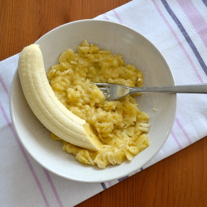 Бананы размять вилкой, если хотите, чтобы сохранились кусочки, или измельчите в блендере, если предпочитаете более ровную структуру.