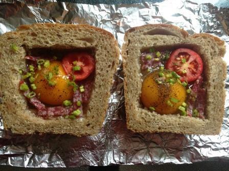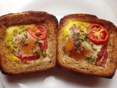 Легкий и быстрый завтрак, у меня из черного хлеба (точнее серого), вы же можете взять свой любимый вариант. Начинка тоже может варьироваться по вкусу.