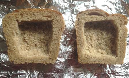 Взять 2 горбушки хлеба и освободить от мякиша.