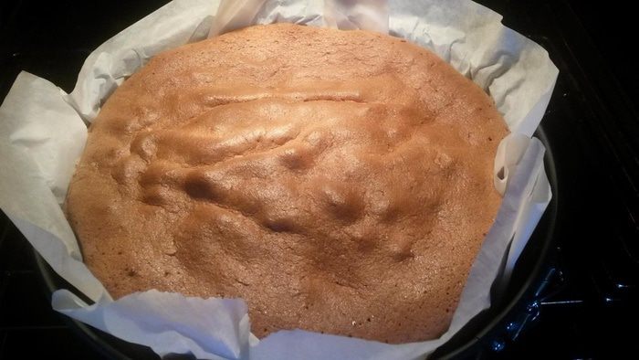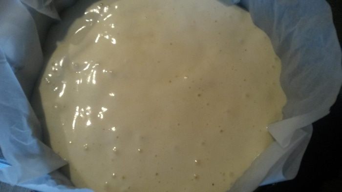 Разъемную форму либо смазать маслом, либо застелить бумагой для выпечки, вылить тесто.