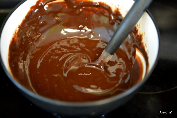 Приготовить шоколадную глазурь. Растопить на медленном огне, смешав шоколадные капли с жирными сливками.