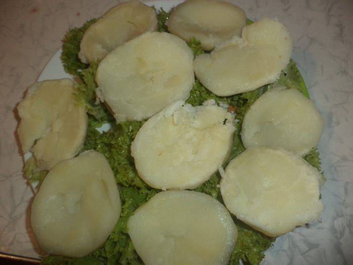 Клубни картофеля средней величины одинакового размера очистить, отварить и остудить. Очень важно, не переварить картофель!