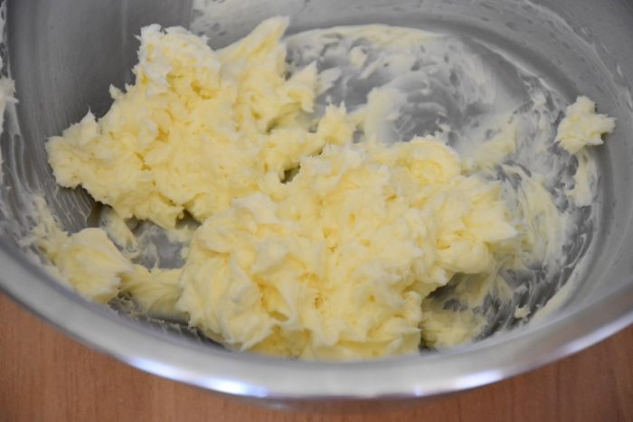 Размягченное сливочное масло взбить миксером в пышную массу.