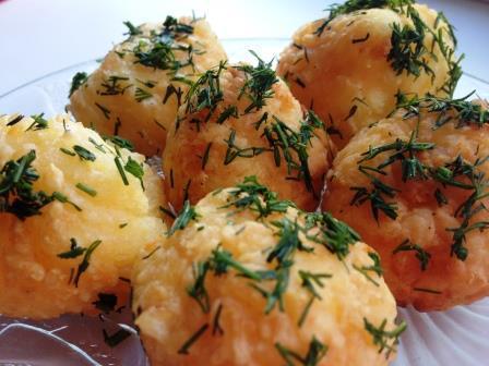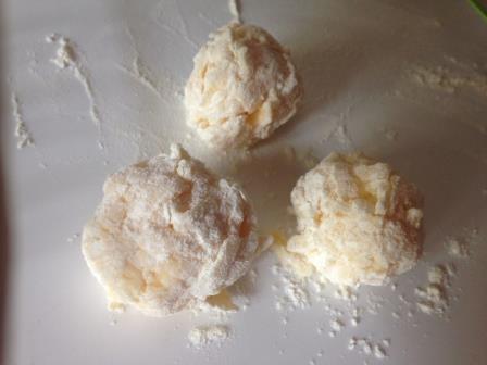 Скатать небольшие шарики, обвалять их в муке и жарить в разогретом растительном масле.