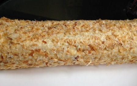 Развернуть и присыпать крошкой из отложенных заранее полосок.