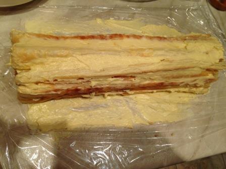 Выложить на нее слой из выпеченных полосок (штучки 4).