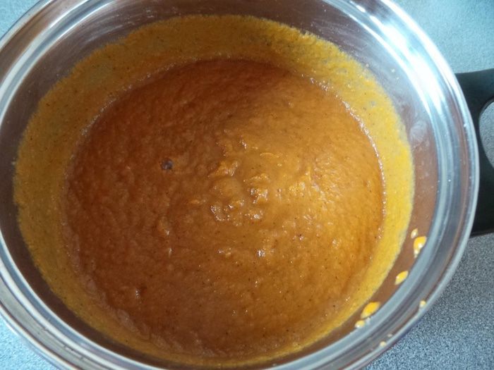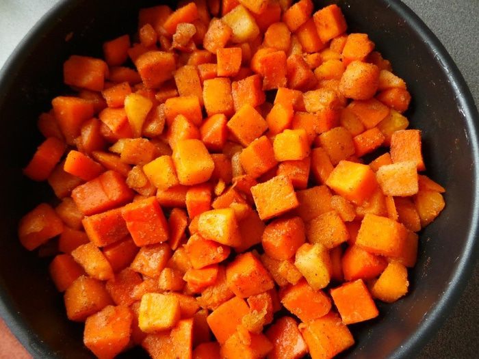 Если тыква берется замороженная, то предварительно её разморозить. Замороженной тыквы понадобится 700 грамм (при запекании из нее выпарится вода и масса станет ровно такой, какая требуется).