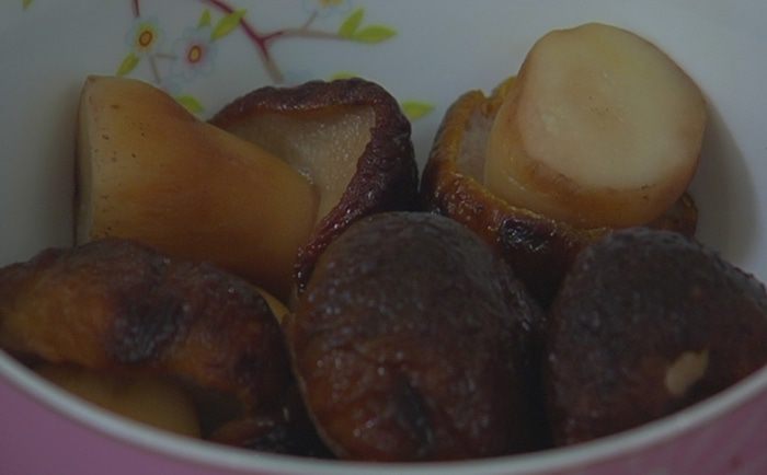 Сухие грибы замочить в кипятке на 30 минут, затем отжать и мелко порубить.