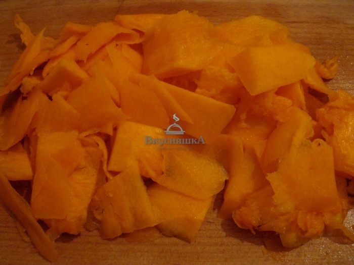 Добавить к курице тыкву и обжаривать в течении 5 минут.