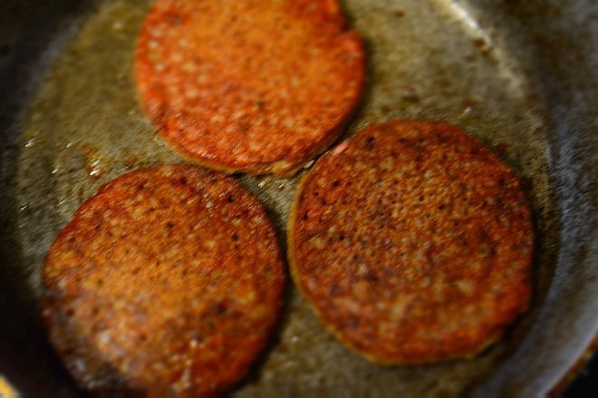 Теперь можно жарить наши оладушки. Сковороду разогреть, влить растительное масло и выкладывать ложкой печеночную смесь. Жарить с двух сторон до золотистого цвета.
