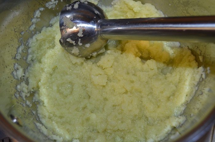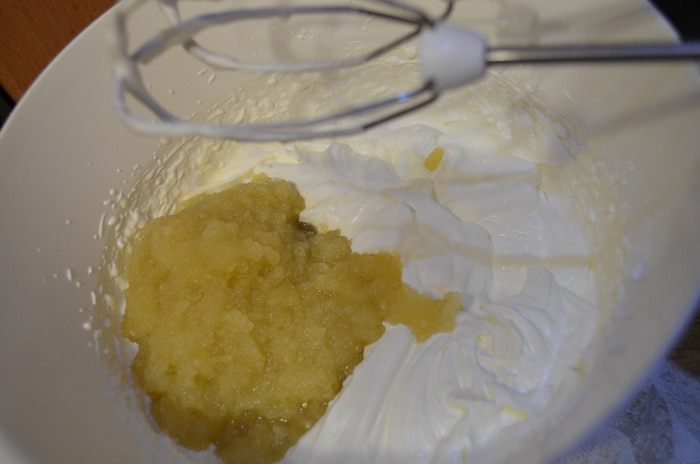 Снять с огня, перелить в чистую посуду, чтобы остановить процесс заваривания и добавить желатин. Пробить блендером. Остудить до 25°С и примешать взбитые сливки.
