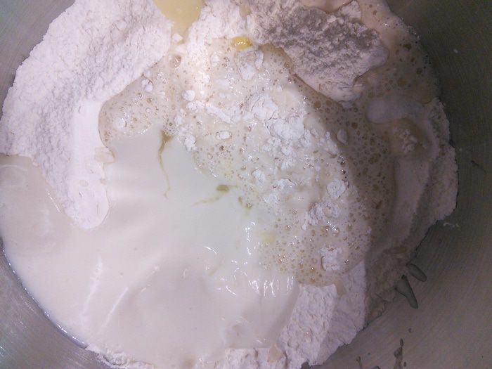 Для стартера необходимо смешать муку с молоком, чтобы не было комочков, и при постоянном помешивании нагреть. Как только масса начнет завариваться убрать с огня и две минуты интенсивно мешать. Масса начнет отделяться от стенок посуды — стартер готов. Посуду накрыть и остудить.