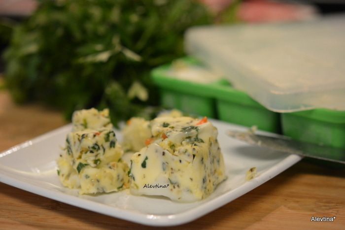 Я использую готовое домашнее масло с зеленью. http://www.edimdoma.ru/retsepty/77569-maslo-slivochnoe-aromatnoe-s-travami-i-chesnokom